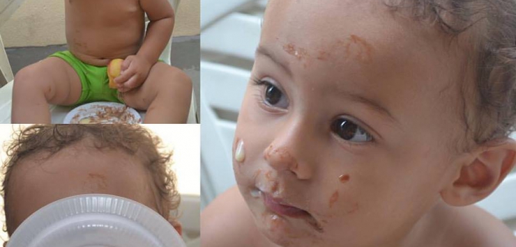 Com o passar do tempo, forrávamos o chão com uma toalha e, com prato e talher na mão, ele tentava acertar a boca... Era prazeroso, sobretudo a ele... No início, havia mais migalhas espalhadas do que em seu estômago. É claro, complementávamos alimentando-o corretamente! Perto dos dois anos, ele já segurava adequadamente o talher e manuseava seu copo. Na mesa, o cenário era o mesmo... É claro, trata-se de uma criança e há sazonalidades no apetite. Porém, no geral, acreditamos que a vivência foi indispensável para que ele comesse bem...aliás, muito bem!