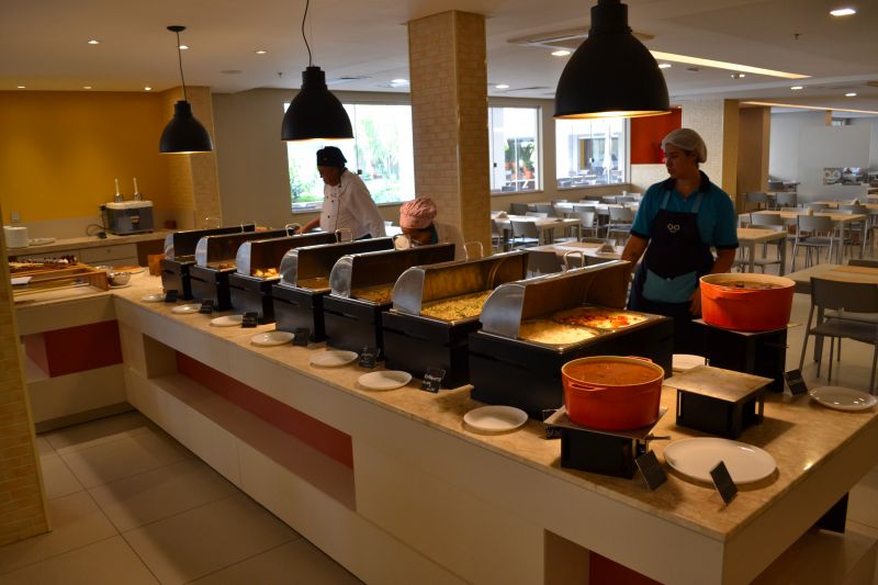O atrativo do buffet é a diversidade no cardápio, que também tem um específico para as crianças, atendidas em um minirrefeitório. Jessé lembra que incorpora ingredientes de época, associando sabor e valor nutricional, sobretudo para oferta da culinária regionalizada, em uma cozinha com funcionamento ininterrupto, que prioriza a produção artesanal, sem terceirizações. O espaço dispõe ainda de cozinha experimental, na qual os hospedes podem preparar pratos com a supervisão do chef.