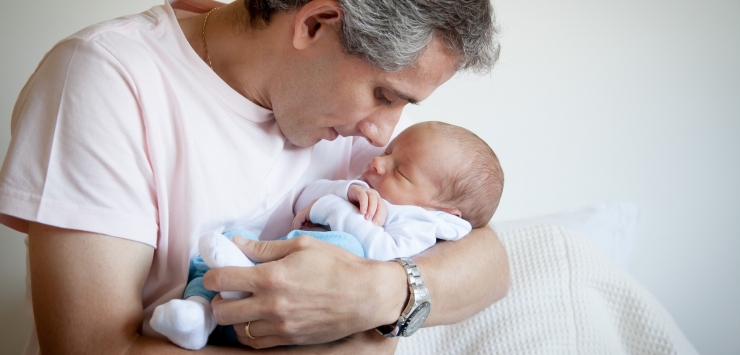 Ficamos aqueles minutinhos no banheiro, recuperando a respiração e a sanidade, e quando tomamos coragem para voltar para a sala, vemos uma cena iluminada: um homem lindo, reluzente, transbordando amor, com seu bebê sobre o peito. Uma cena perfeita, de amor verdadeiro, que aquece nosso coração. E é bem aí que a mágica acontece: a gente se apaixona por aquele homem. Porque se antes ele era o amor da nossa vida, agora ele é o pai do nosso filho.