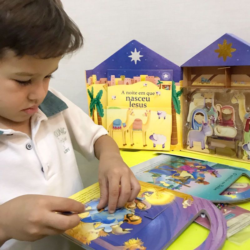 Além dos livros, vieram materiais para confeccionar pulseirinhas contando a história do nascimento de Jesus, o calendário do advento, com 25 atividades para fazer até o Natal, guias de leitura para o adulto, adesivos... A cada mês, um kit diferente!