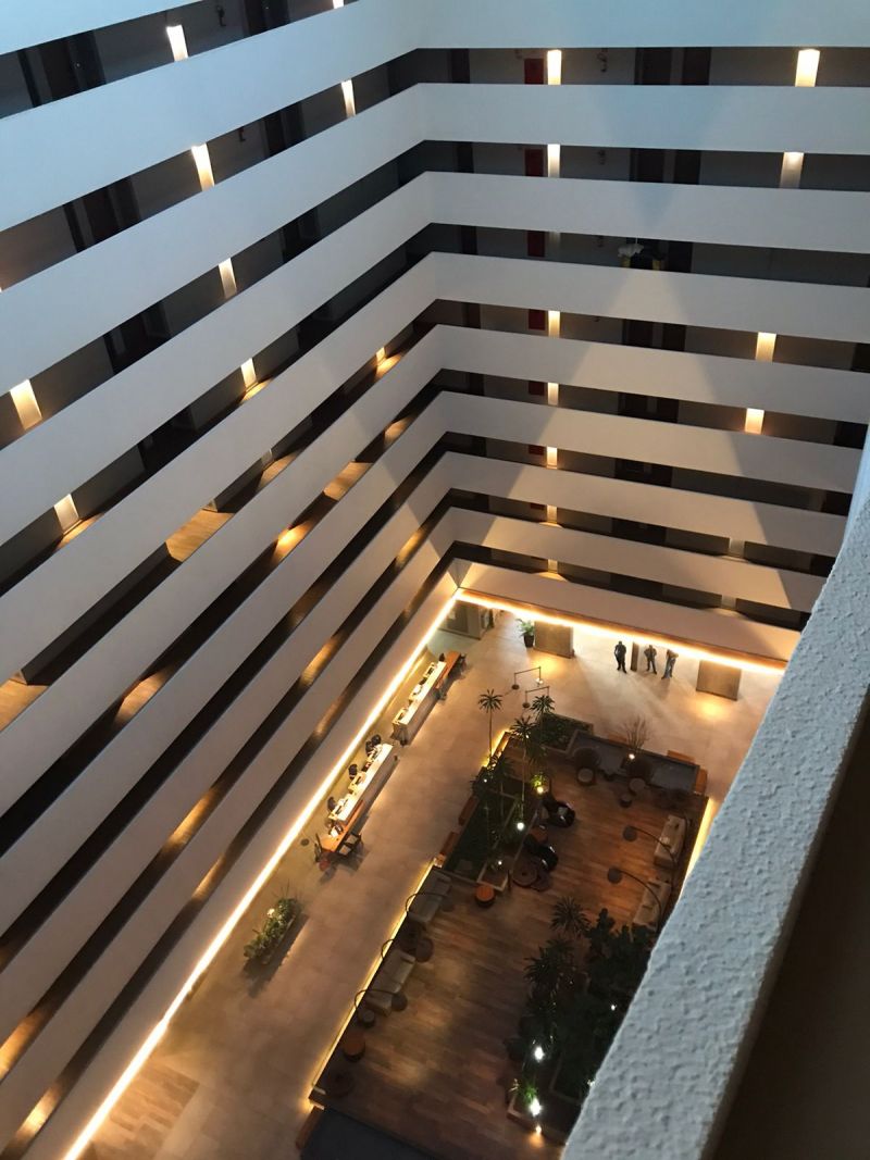 café, área de lazer com piscina e playground, além de um prédio com arquitetura suntuosa, no qual o hóspede consegue identificar na moderna edificação todos os ambientes, longe das tradicionais características de corredores fechados.